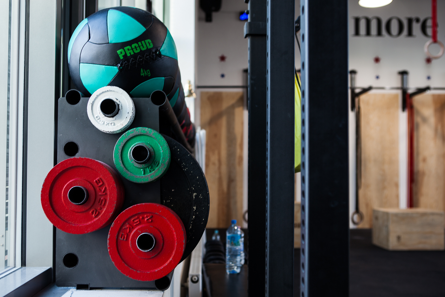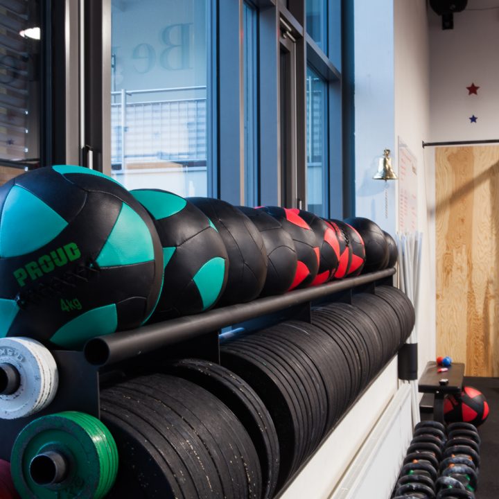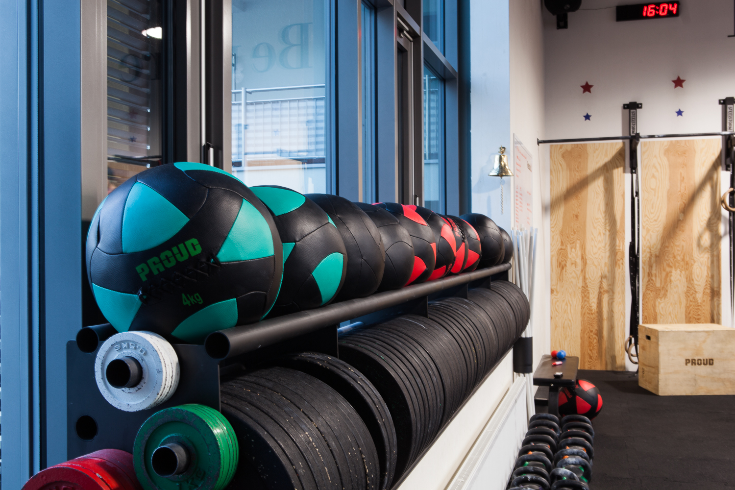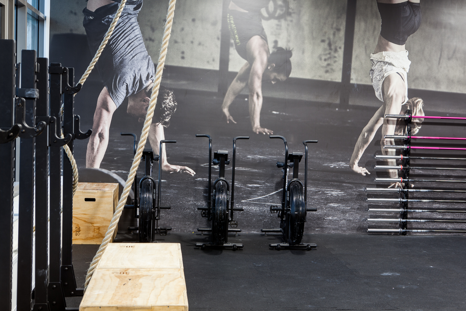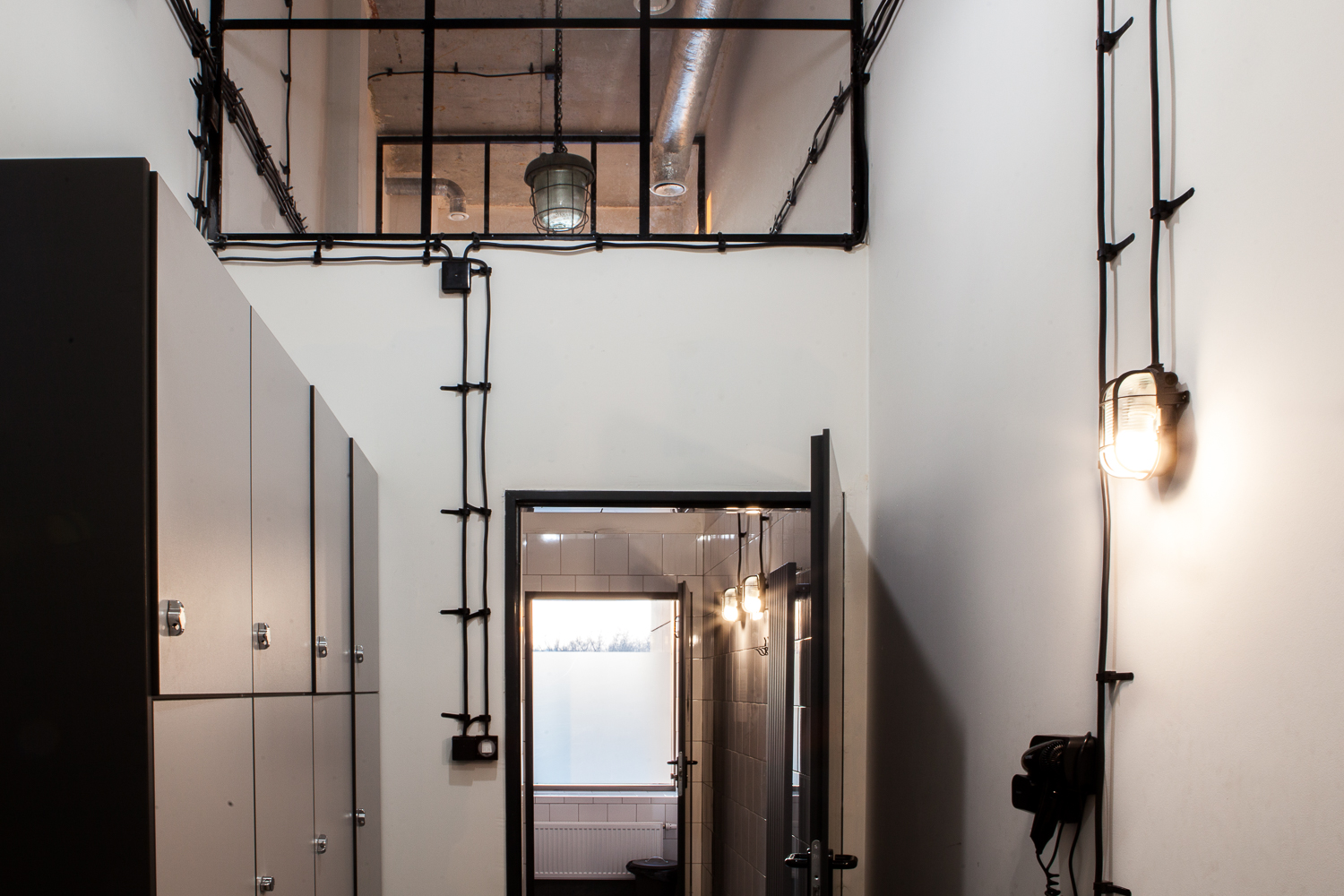 Projekt wnętrza powstał na potrzeby ludzi, których połączyła sportowa pasja do Crossfitu. głównym celem było stworzenie podziału funkcjonalnego w wysokiej, otwartej przestrzeni, z wyraźnie zaznaczonym podziałem na część socjalną z szatniami oraz salę do ćwiczeń przy zachowaniu loftowego charakteru. Aby doświetlić wąską, długą i wysoką przestrzeń szatni zdecydowałyśmy się na duże naświetla w czarnej, stalowej ramie. Na sali ćwiczeń ściany z obu stron to potężne szklenia, dzięki którym nie brakuje światła dziennego w tej strefie. Dwie pozostałe ściany są miejscem na sprzęt do ćwiczeń oraz recepcję. W lokalu przeważają jasne kolory, jedynym ciemnym akcentem jest fototapeta z motywem firmowym. 12u1 to mekka świata Crossfitowego na Wilanowie.